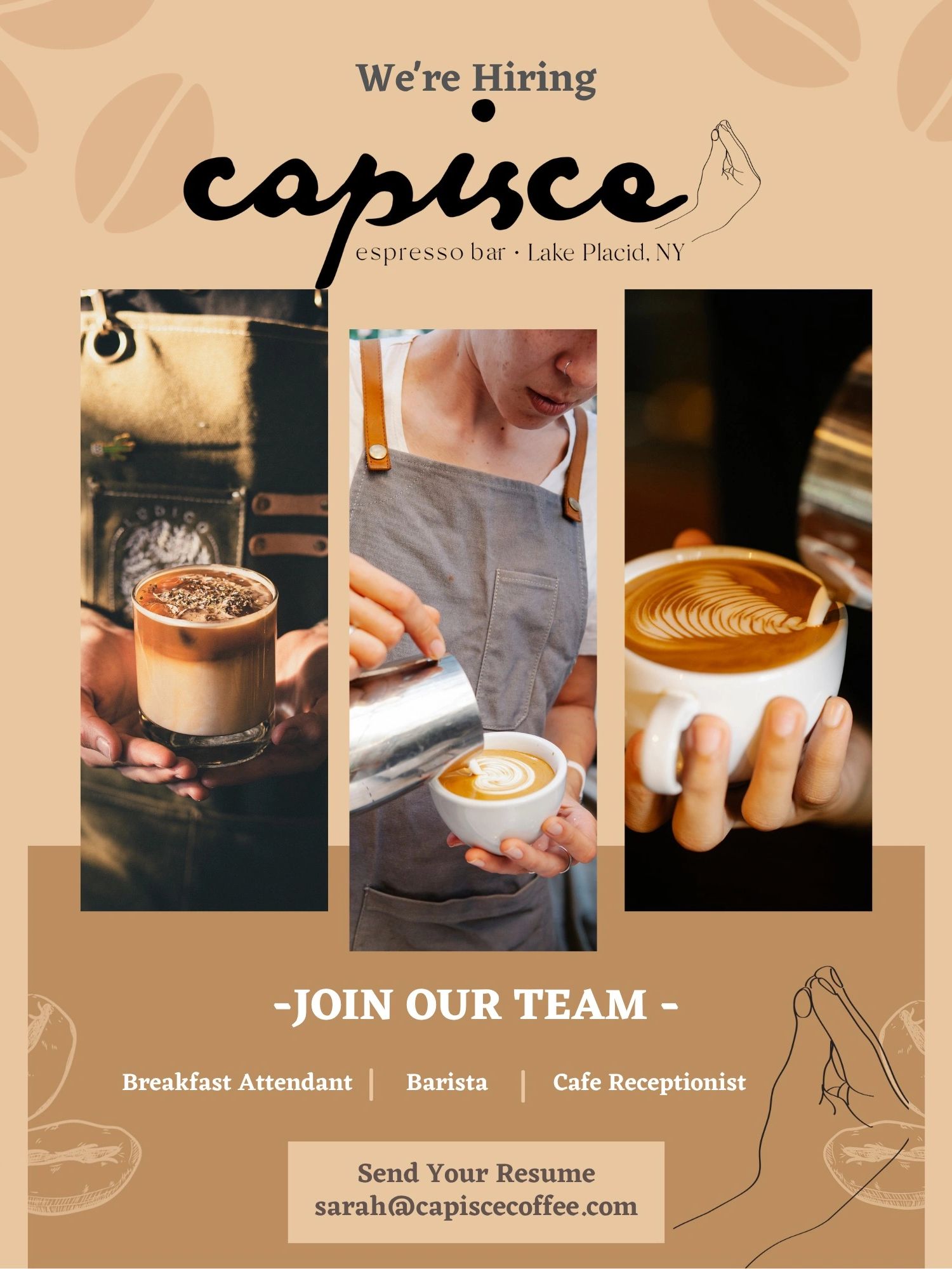 Capisce Coffee & Espresso Bar is a woman-owned and operated cafe nestled in the heart of the Adirondacks. We proudly serve breakfast, lunch, latte flights, artisanal lite bites, and an array of Italian and seasonally inspired specialties. Our Italian drink menu brings a touch of the old country to every cup, while local and fair-trade art and products adorn our walls and shelves, complementing the beauty of our state-of-the-art La Marzocco espresso machine.